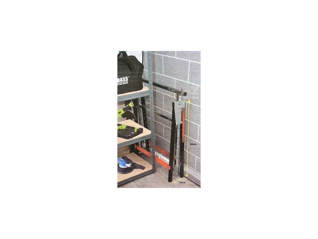 Stavební podpěra se sedmistupňovým nastavením výšky od 80 - 130 cm a nosností až 100 kg (většinou používáte na stavbě dvě podpěry a tím máte zvýšenou nosnost na 200 kg při použití 2ks podpěr). Doporučujeme koupi 2 ks , které mezi sebou můžete spojit vhodnou a pevnou dřevěnou fošnou s požadovanou nosností a potřebnou délkou, vznikne vám tak stavební lešení pro práci nad úrovní podlahy, např.: při nahazování omítek, malování, drážkování, tesařských a instalatérských prací a podobně. Podpěry můžete využít i jako pracovní stůl na stavbě čí v dílně. Podpěra je skladná, po složení nezabere mnoho místa, vleze se i do kufru vašeho auta pro snadný převoz na pracoviště.